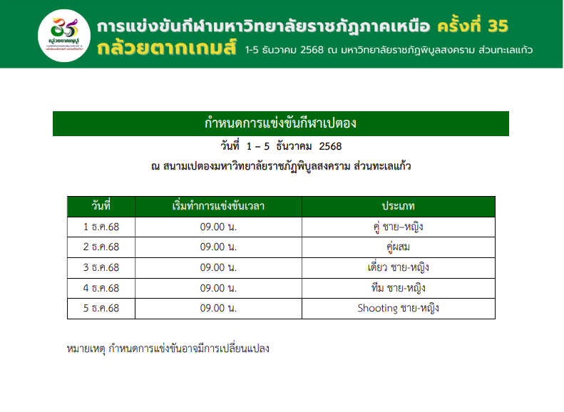 กำหนดการ พิธีเปิด-ปิดกล้วยตากเกมส์
